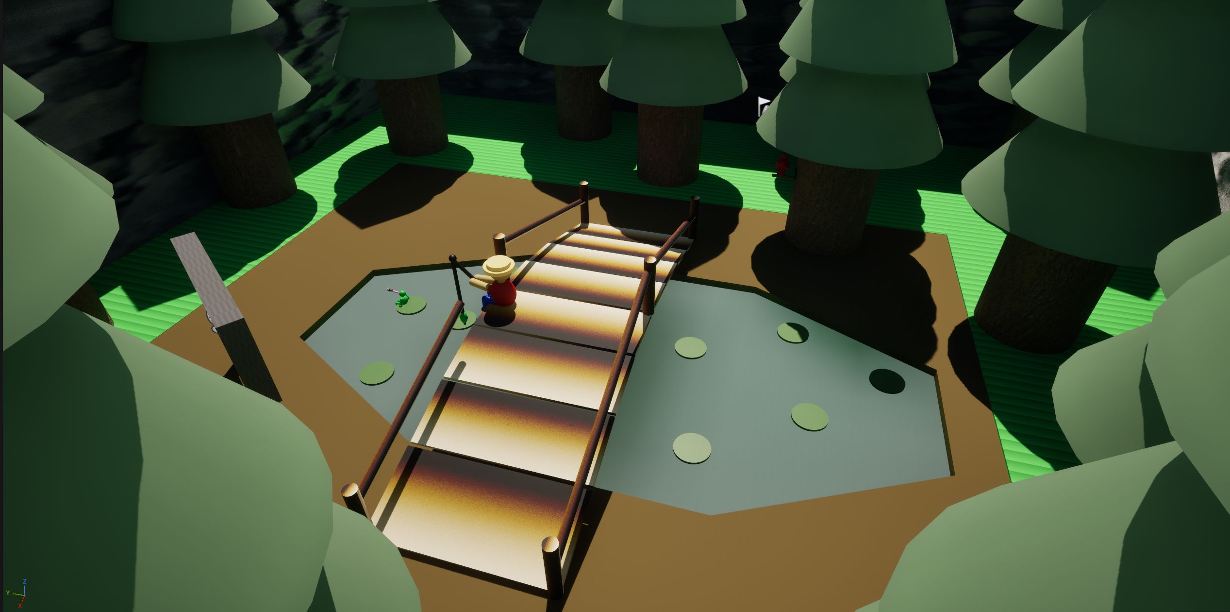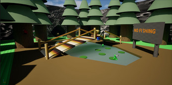 A simple environment friendly artwork about a fisher and animals carrying on with their daily lives